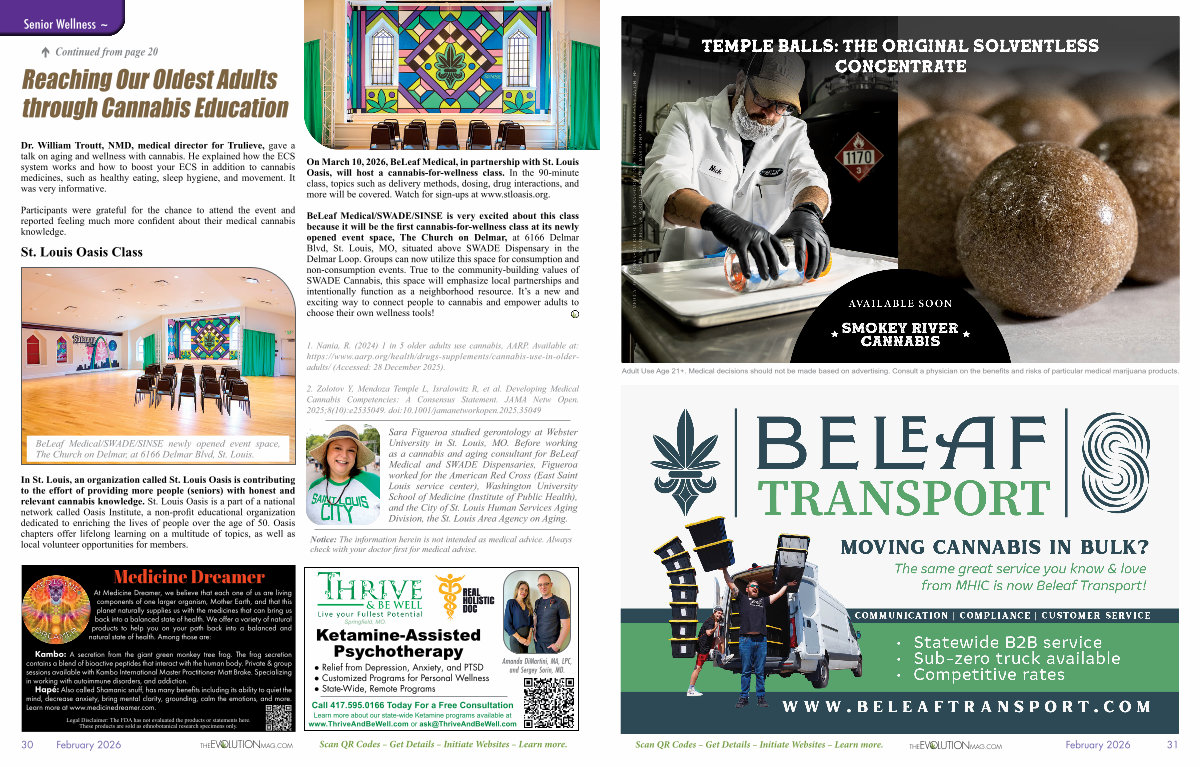 On March 10, 2026, BeLeaf Medical, in partnership with St. Louis Oasis, will host a cannabis-for-wellness class. In the 90-minute class, topics such as delivery methods, dosing, drug interactions, and more will be covered. Watch for sign-ups at www. stloasis. org.
