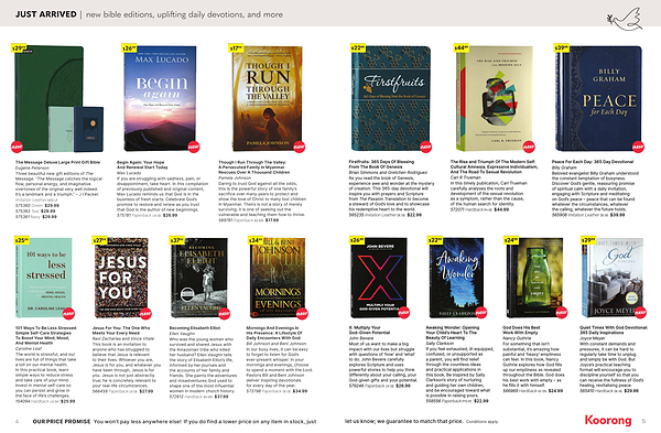 Quiet Times With God Devotional : 365 Daily Inspirations Joyce Meyer With constant demands and pressures , it can be hard to regularly take time to unplug and simply be with God . But Joyce ’ s practical teaching format will encourage you to discipline yourself so that you can receive the fullness of God ’ s healing , revitalising peace . 565410 Hardback DE GE $ 29.99 |