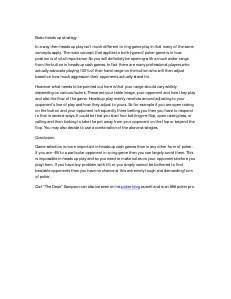 Basic heads up strategy In a way then heads up play isn’t much different to ring game play in that many of the same concepts apply. The main concept that applies to both types of poker game is in how position is of vital importance. So you will definitely be opening with a much wider range from the button in heads up cash games. In fact there are many professional players who actually advocate playing 100% of their hand range on the button who will then adjust based on how much aggression their opponents actually stand for. However what needs to be pointed out here is that your range should vary widely depending on various factors. These are your table image, your opponent and how they play and also the flow of the game. Heads up play mainly revolves around adjusting to your opponent’s line of play and how they adjust to yours. So for example if you are open raising on the button and your opponent is frequently three betting you then you have to respond to that in several ways. It could be that you start four betting pre-flop, open raising less, or calling and then looking to take the pot away from your opponent on the flop or beyond the flop. You may also decide to use a combination of the above strategies. Conclusion Game selection is more important in heads up cash games than in any other form of poker. If you are –EV to a particular opponent in a ring game then you can largely avoid them. This is impossible in heads up play and so you need to make notes on your opponents before you play them. If you have any problem with tilt or you simply cannot be bothered to find beatable opponents then you have no chance at this extremely tough and demanding form of poker. Carl “The Dean” Sampson can also be seen on his poker blog as well and is an 888 poker pro.