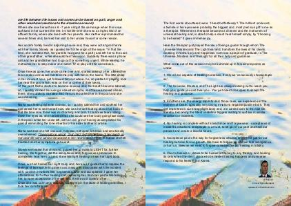 The first words she uttered were, ' I breath effortlessly '!. The brilliant smile and, a twinkle in her eyes were probably the biggest and, most precious gift to me as a therapist. Whenever a therapist becomes a channel and the instrument of universal healing and, is able to help a client heal himself simply, by " choosing to be healed " It gives immense joy.