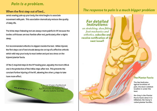 on stretching, shoe fitting, foot mechanics and orthotics, subscibe and receive notification of our next issue!!