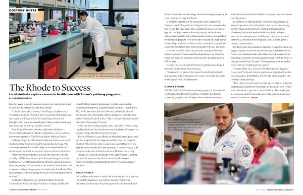 R-CEINN offers three URI students each summer the chance to work alongside neurologists and neurosurgeons for two weeks . Neishay Ayub , MD , assistant professor of neurology and the department ’ s diversity , equity , and inclusion officer , says students select their mentors and co-design their own research projects . “ We also hope to maintain longitudinal relationships with the students so we can help in their path to science beyond their time in the program with us ,” she adds . Godinez was able to hit the ground running in Brown ’ s Center for Spine Tumor and Chordoma Research , where he began working as a research assistant after graduating from URI in May .