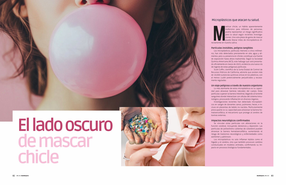 Los microplásticos, partículas menores a cinco milímetros, han sido detectados previamente en aire, agua y alimentos, pero su presencia en chicles constituye una fuente de exposición hasta ahora inadvertida. Según la Sociedad Química Americana( ACS), este hallazgo que será presentado oficialmente en marzo de 2025, evidencia una nueva vía de ingesta de estas peligrosas partículas.