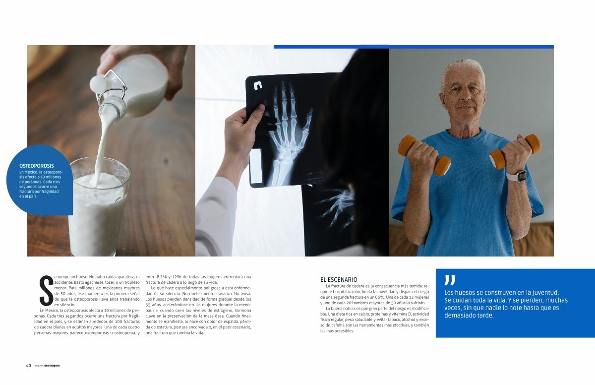 En México, la osteoporosis afecta a 10 millones de personas. Cada tres segundos ocurre una fractura por fragilidad en el país