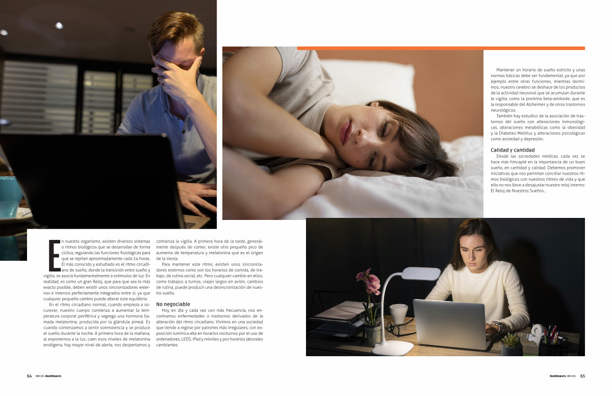 En nuestro organismo , existen diversos sistemas o ritmos biológicos que se desarrollan de forma cíclica , regulando las funciones fisiológicas para que se repitan aproximadamente cada 24 horas . El más conocido y estudiado es el ritmo circadiano de sueño , donde la transición entre sueño y vigilia , se asocia fundamentalmente a estímulos de luz . En realidad , es como un gran Reloj , que para que sea lo más exacto posible , deben existir unos sincronizadores externos e internos perfectamente integrados entre sí , ya que cualquier pequeño cambio puede alterar este equilibrio .