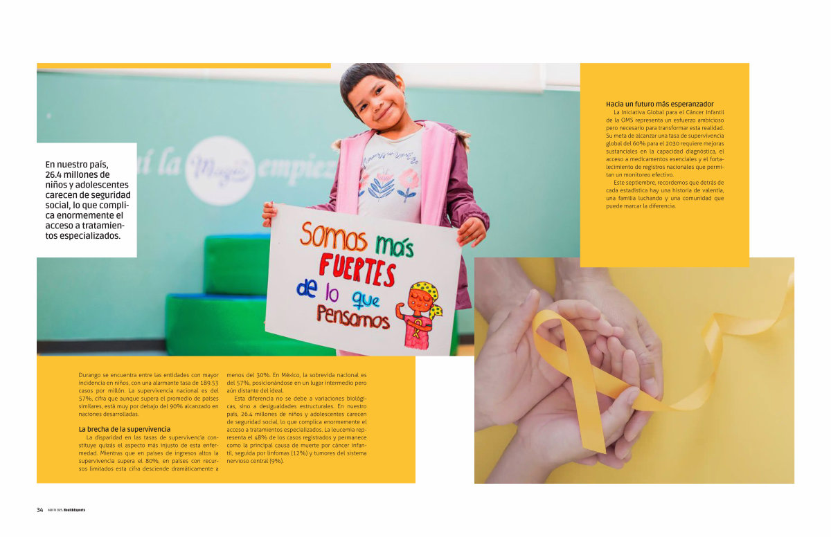 Durango se encuentra entre las entidades con mayor incidencia en niños, con una alarmante tasa de 189.53 casos por millón. La supervivencia nacional es del 57 %, cifra que aunque supera el promedio de países similares, está muy por debajo del 90 % alcanzado en naciones desarrolladas.