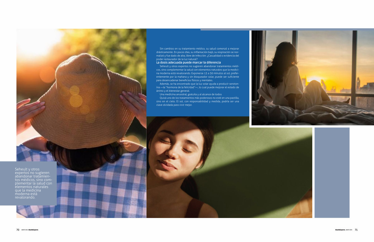 s no sugieren abandonar tratamientos médialud con elementos naturales que la medicido. Exponerse 15 a 30 minutos al sol, prefery sin bloqueador solar, puede ser suficiente ios físicos y mentales. do que la luz solar ayuda a producir serotonicidad”—, lo cual puede mejorar el estado de al. gratuita y al alcance de todos entos más poderosos no esté en una pastilla, n responsabilidad y medida, podría ser una ejor.