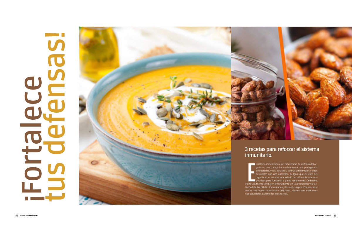 El sistema inmunitario es el mecanismo de defensa del organismo que trabaja incansablemente para protegernos de bacterias , virus , parásitos , toxinas ambientales y otras sustancias que nos enferman . Al igual que el resto del organismo , el sistema inmunitario necesita nutrientes específicos para funcionar a pleno rendimiento . De hecho , ciertos nutrientes influyen directamente en la producción y la actividad de las células inmunitarias y los anticuerpos . Por eso , aquí tienes tres recetas nutritivas y deliciosas , ideales para mantenernos saludables durante los meses fríos .