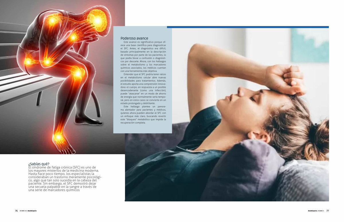 ¿ Sabías qué ? El síndrome de fatiga crónica ( SFC ) es uno de los mayores misterios de la medicina moderna . Hasta hace poco tiempo , los especialistas la consideraban un trastorno meramente psicológico , algo que tan solo sucedía en la cabeza del paciente . Sin embargo , el SFC demostró dejar una secuela palpable en la sangre a través de una serie de marcadores químicos