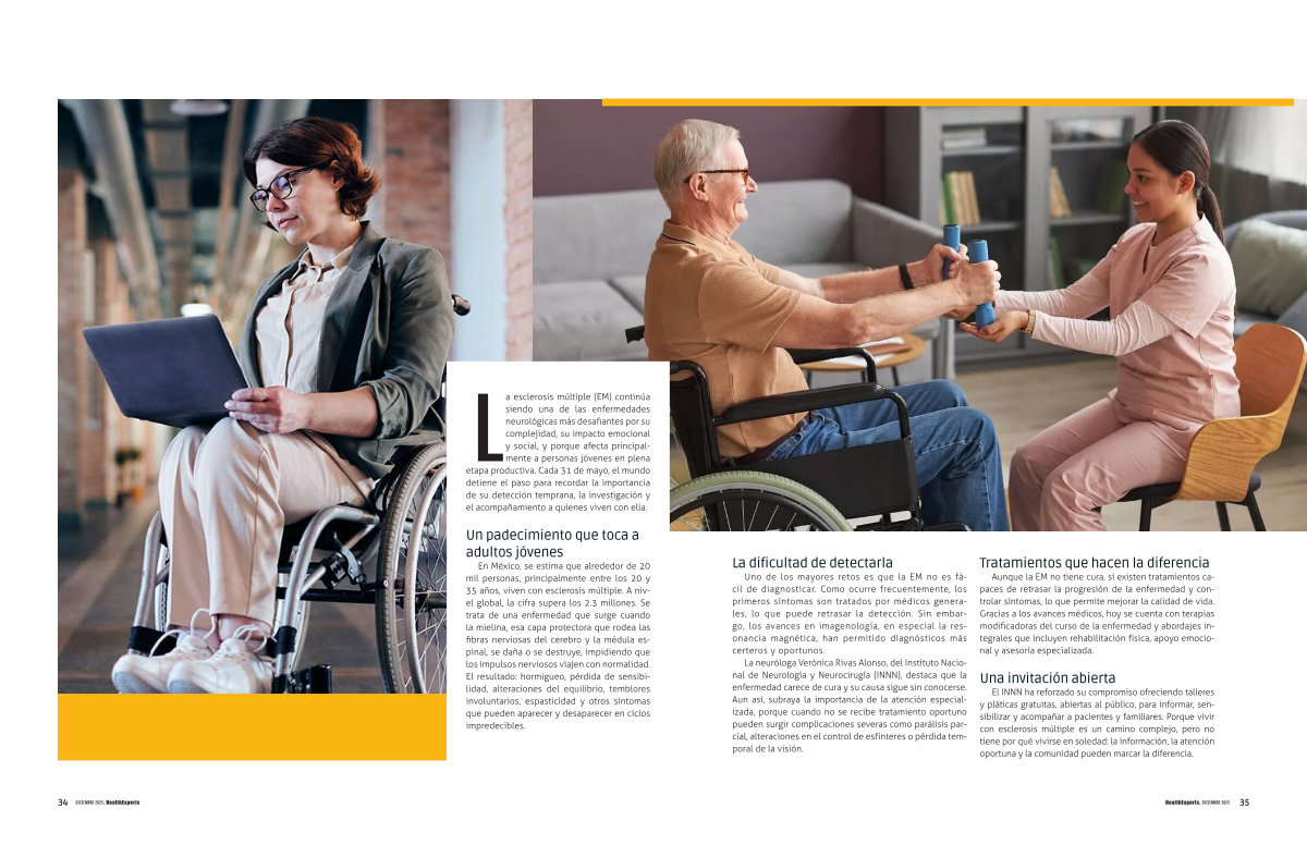 En México, se estima que alrededor de 20 mil personas, principalmente entre los 20 y 35 años, viven con esclerosis múltiple. A nivel global, la cifra supera los 2.3 millones. Se trata de una enfermedad que surge cuando la mielina, esa capa protectora que rodea las fibras nerviosas del cerebro y la médula espinal, se daña o se destruye, impidiendo que los impulsos nerviosos viajen con normalidad. El resultado: hormigueo, pérdida de sensibilidad, alteraciones del equilibrio, temblores involuntarios, espasticidad y otros síntomas que pueden aparecer y desaparecer en ciclos impredecibles.