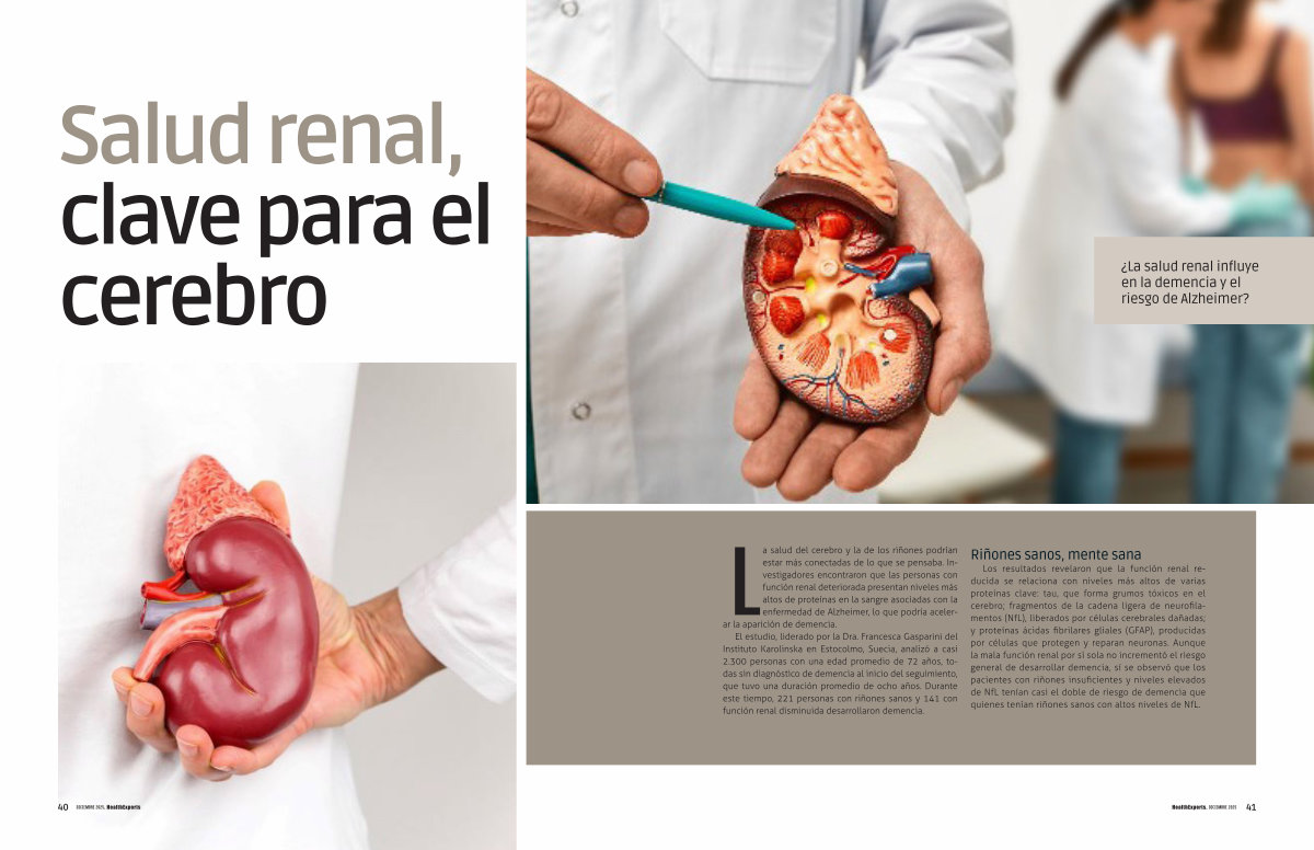 Los resultados revelaron que la función renal reducida se relaciona con niveles más altos de varias proteínas clave: tau, que forma grumos tóxicos en el cerebro; fragmentos de la cadena ligera de neurofilamentos( NfL), liberados por células cerebrales dañadas; y proteínas ácidas fibrilares gliales( GFAP), producidas por células que protegen y reparan neuronas. Aunque la mala función renal por sí sola no incrementó el riesgo general de desarrollar demencia, sí se observó que los pacientes con riñones insuficientes y niveles elevados de NfL tenían casi el doble de riesgo de demencia que quienes tenían riñones sanos con altos niveles de NfL.
