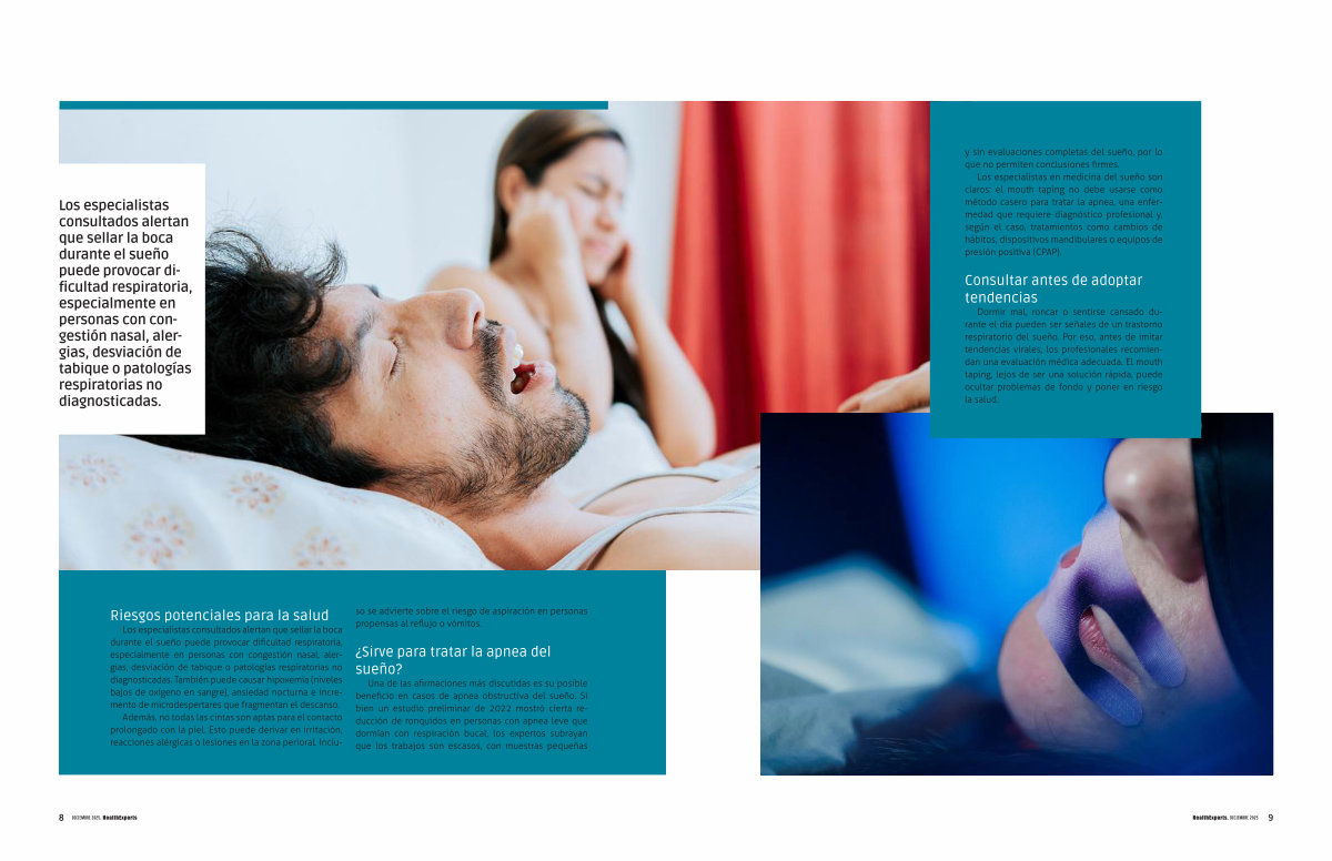 Los especialistas consultados alertan que sellar la boca durante el sueño puede provocar dificultad respiratoria, especialmente en personas con congestión nasal, alergias, desviación de tabique o patologías respiratorias no diagnosticadas.