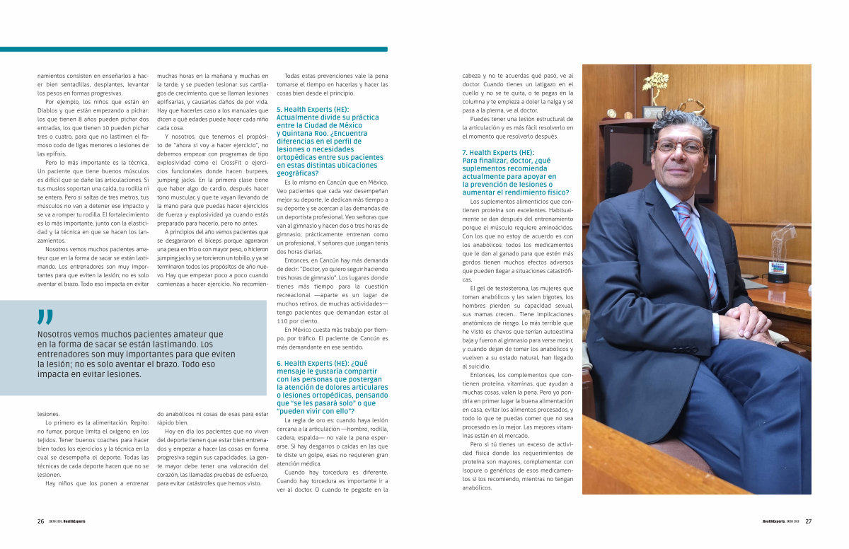 Es lo mismo en Cancún que en México. Veo pacientes que cada vez desempeñan mejor su deporte, le dedican más tiempo a su deporte y se acercan a las demandas de un deportista profesional. Veo señoras que van al gimnasio y hacen dos o tres horas de gimnasio; prácticamente entrenan como un profesional. Y señores que juegan tenis dos horas diarias.