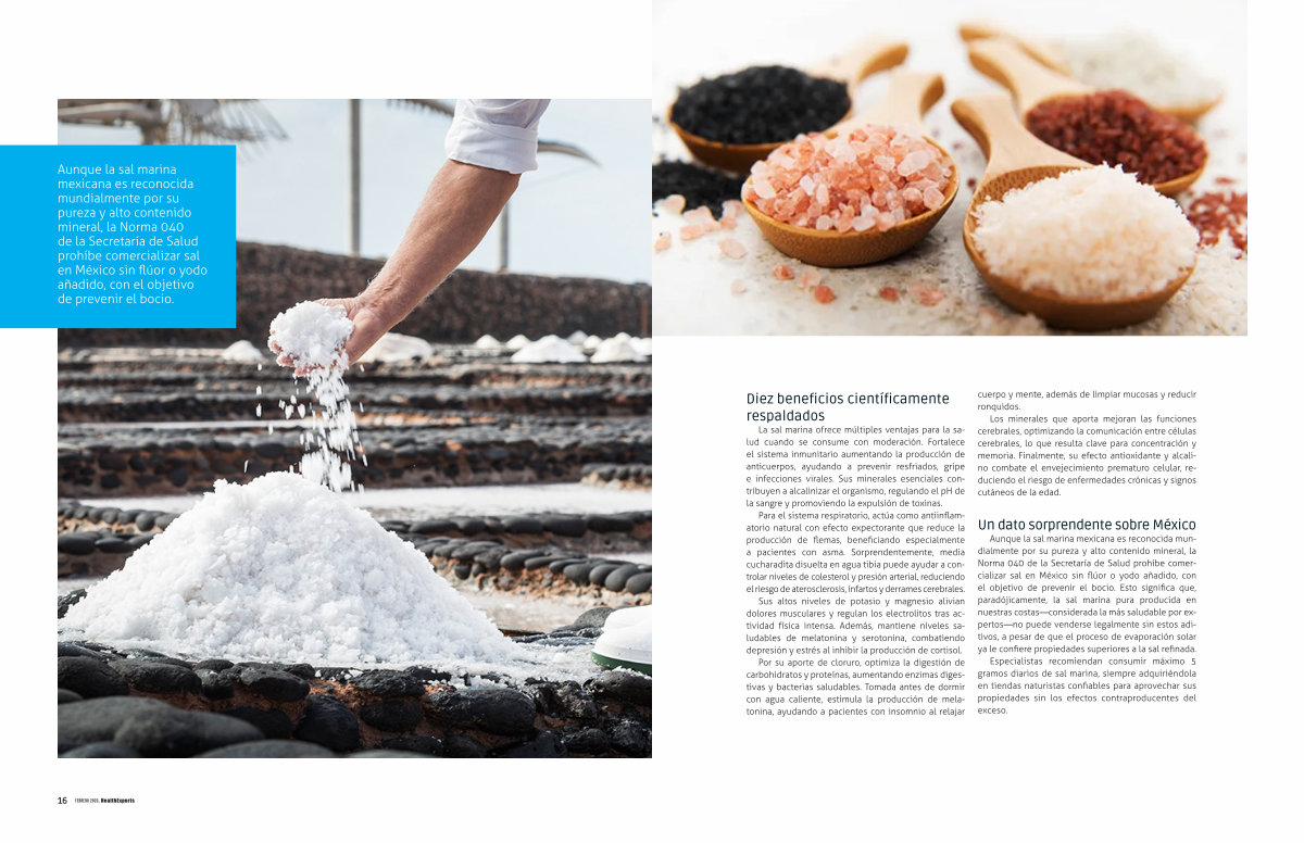 Aunque la sal marina mexicana es reconocida mundialmente por su pureza y alto contenido mineral, la Norma 040 de la Secretaría de Salud prohíbe comercializar sal en México sin flúor o yodo añadido, con el objetivo de prevenir el bocio. Esto significa que, paradójicamente, la sal marina pura producida en nuestras costas— considerada la más saludable por expertos— no puede venderse legalmente sin estos aditivos, a pesar de que el proceso de evaporación solar ya le confiere propiedades superiores a la sal refinada.