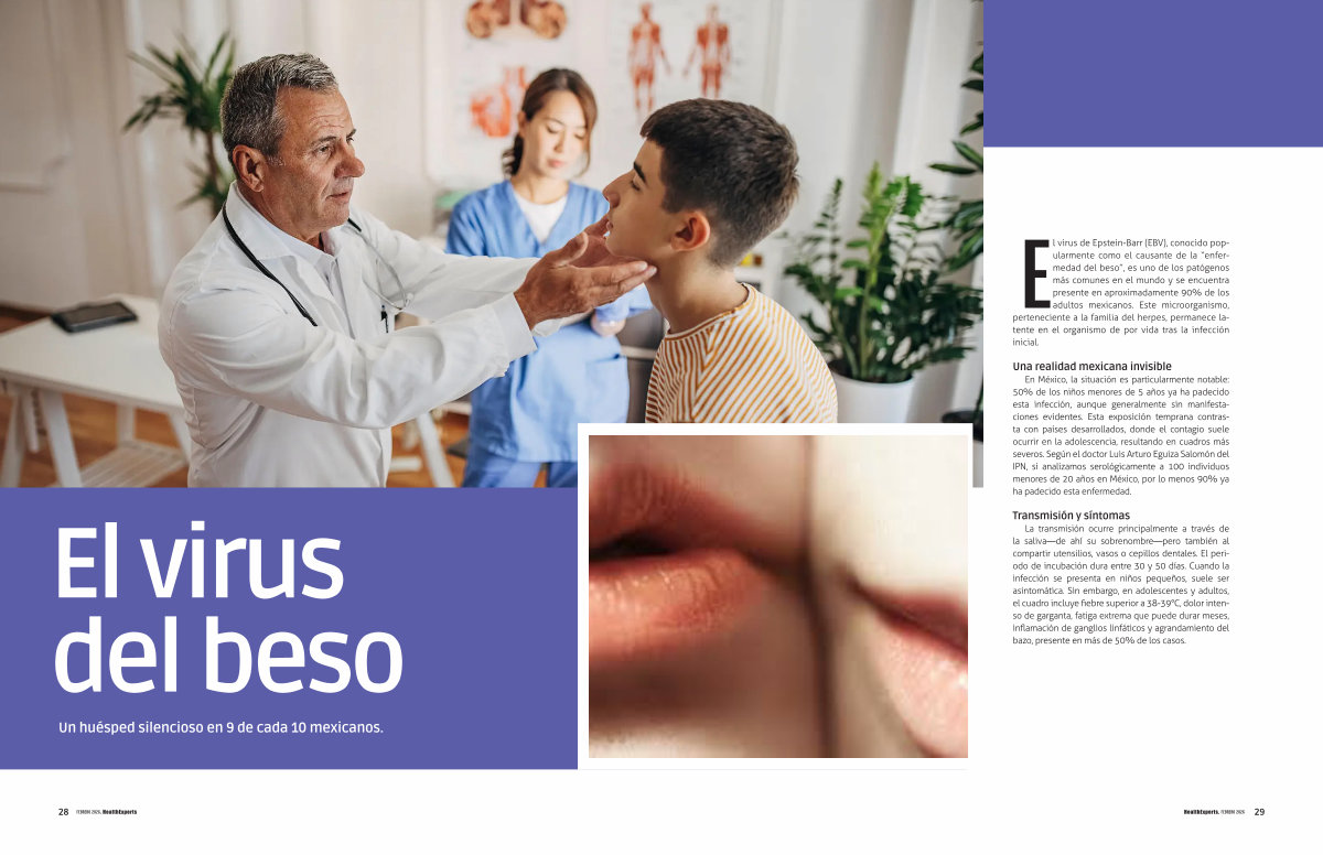El virus de Epstein-Barr( EBV), conocido popularmente como el causante de la“ enfermedad del beso”, es uno de los patógenos más comunes en el mundo y se encuentra presente en aproximadamente 90 % de los adultos mexicanos. Este microorganismo, perteneciente a la familia del herpes, permanece latente en el organismo de por vida tras la infección inicial.