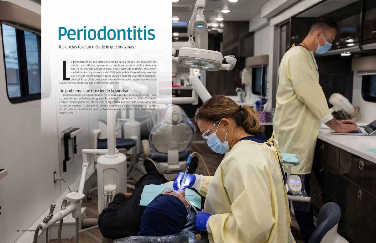La periodontitis es una infección crónica de los tejidos que sostienen los dientes, y en México representa un problema de salud pública alarmante que va mucho más allá de la boca. Según datos de la UNAM, esta enfermedad tiene una prevalencia del 70 % en la población mexicana, mientras que 90 % de los mexicanos padece caries y 70 % alguna enfermedad periodontal. Estas cifras posicionan a las enfermedades bucales como uno de los problemas sanitarios más desatendidos del país.