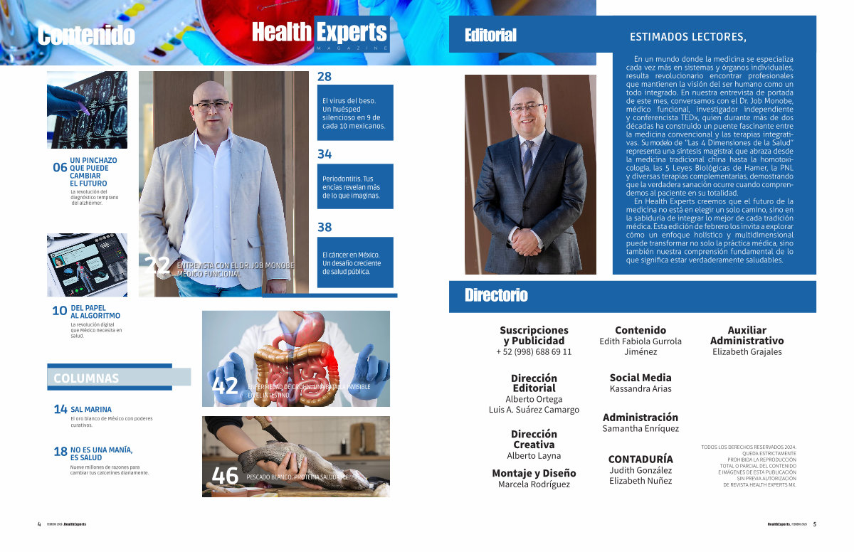 En Health Experts creemos que el futuro de la medicina no está en elegir un solo camino, sino en la sabiduría de integrar lo mejor de cada tradición médica. Esta edición de febrero los invita a explorar cómo un enfoque holístico y multidimensional puede transformar no solo la práctica médica, sino también nuestra comprensión fundamental de lo que significa estar verdaderamente saludables.