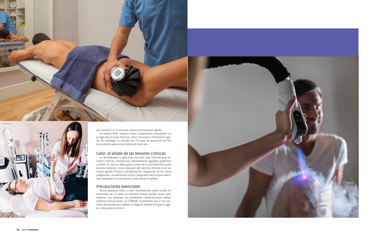 Nunca apliques hielo o calor directamente sobre la piel sin envolverlo en un paño; el contacto directo puede causar quemaduras. Las personas con problemas cardiovasculares deben extremar precauciones. La CONADE recomienda dos a tres sesiones semanales para atletas. La regla es simple: frío para lo agudo, calor para lo crónico.