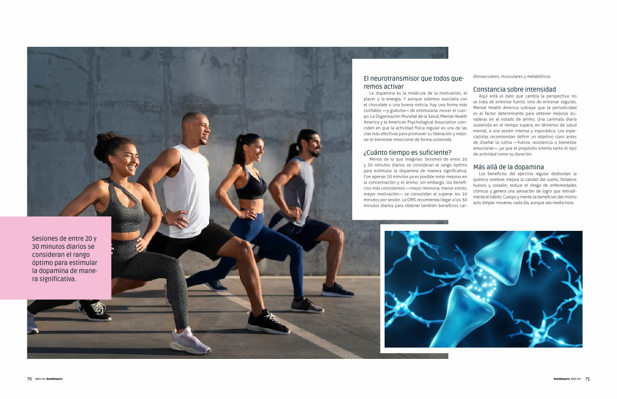 Sesiones de entre 20 y 30 minutos diarios se consideran el rango óptimo para estimular la dopamina de manera significativa.