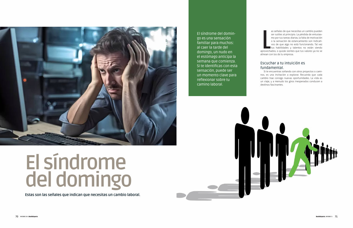 El síndrome del domingo es una sensación familiar para muchos : al caer la tarde del domingo , un nudo en el estómago anticipa la semana que comienza . Si te identificas con esta sensación , puede ser un momento clave para reflexionar sobre tu camino laboral .