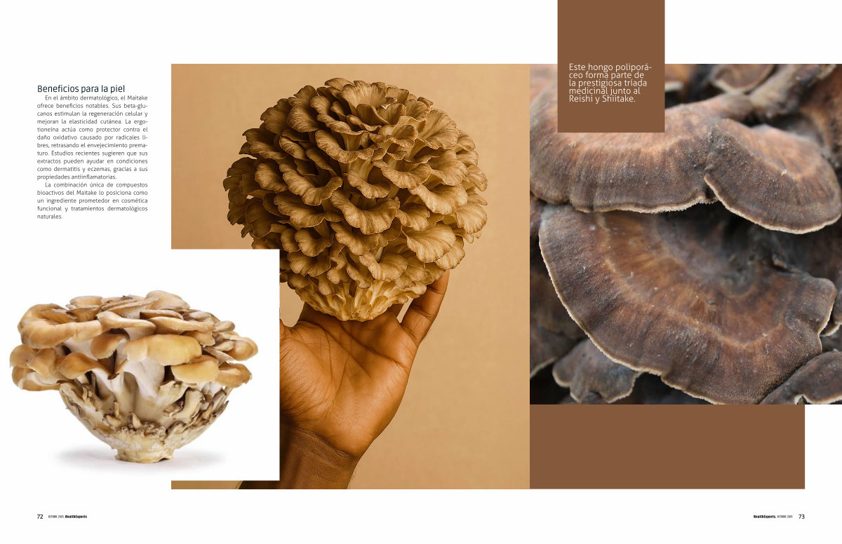 La combinación única de compuestos bioactivos del Maitake lo posiciona como un ingrediente prometedor en cosmética funcional y tratamientos dermatológicos naturales.