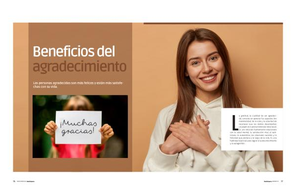 La gratitud , la cualidad de ser agradecido , consiste en apreciar los aspectos ( no materialistas ) de la vida y la voluntad de reconocer que los demás desempeñan un papel en nuestro bienestar emocional . Es una emoción fuertemente relacionada con la salud mental , la satisfacción vital , el optimismo , la autoestima , las relaciones sociales y la felicidad que perdura a lo largo de la vida . Es una habilidad esencial para lograr el autoconocimiento y la autogestión .