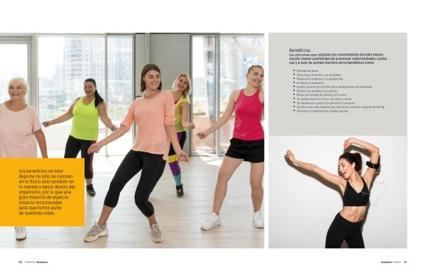 Pérdida de peso Disminuye el estrés y la ansiedad Mejora la confianza y el autoestima Estimula la memoria Ayuda a evitar los efectos de la enfermedad de Alzheimer Elimina las atrofias musculares Mejora el estado de ánimo y el humor Se realiza ejercicio físico sin darse cuenta . Se modela el cuerpo sin advertir el esfuerzo . Quema unas 400 calorías por hora para un peso corporal de 68 Kg .
