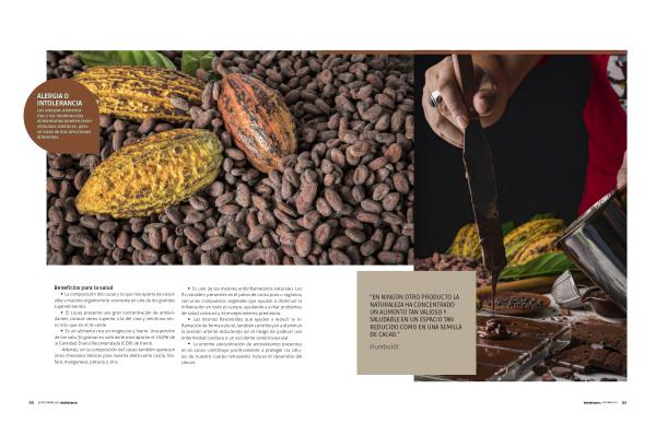“ EN NINGÚN OTRO PRODUCTO LA NATURALEZA HA CONCENTRADO UN ALIMENTO TAN VALIOSO Y SALUDABLE EN UN ESPACIO TAN REDUCIDO COMO EN UNA SEMILLA DE CACAO .”
