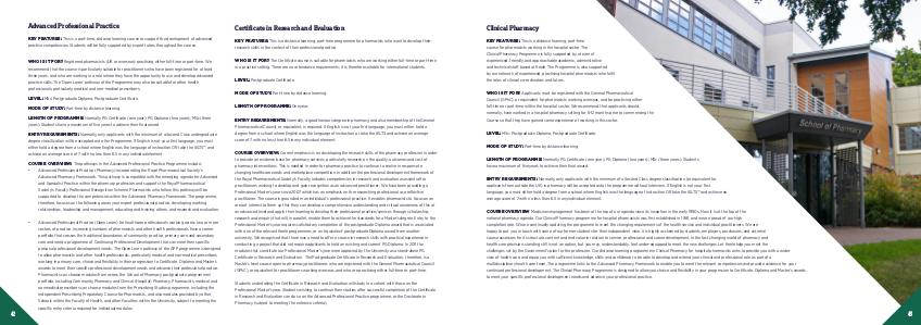 continued professional development. The Clinical Pharmacy Programme is designed to allow you choice and flexibility in your progression to Certificate, Diploma and Master’s awards,
