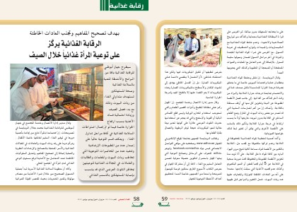 س�يطره جهاز ابوظبئ للرقابة الغذاءية باقة من البرامج والأنش�طة المعنية بالس�لامة الغذاءية وص�هة المس�تهلكين تس�تهدف متداولي الغذاء من ربّات البيوت وذلك مع بدء فص�ل الص�يف وزيادة احتمالية فس�اد الأغذية بس�بب ارتفاع الهرارة خاص�ة فيما لو تمّ اهمالٕ اش�تراطات الس�لامة الغذاءية في كافة مراحل تداول الغذاء. ويعكف قس�م التوعية حالياً على اصٕ �دار عدد من المطبوعات الإرش�ادية وتنفيذ عدد من المحاض�رات التوعوية التي تخاطب ربات البيوت والمعلمات والطالبات