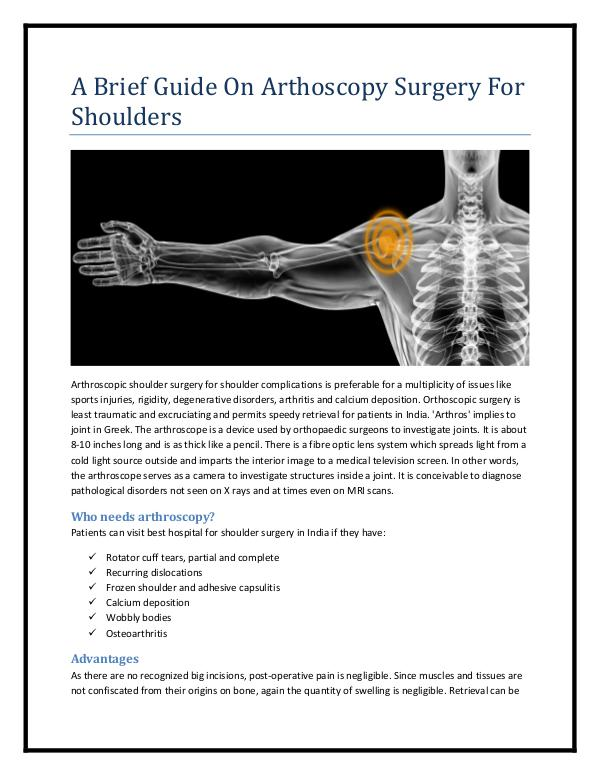 least traumatic and excruciating and permits speedy retrieval for patients in India. 'Arthros' implies to