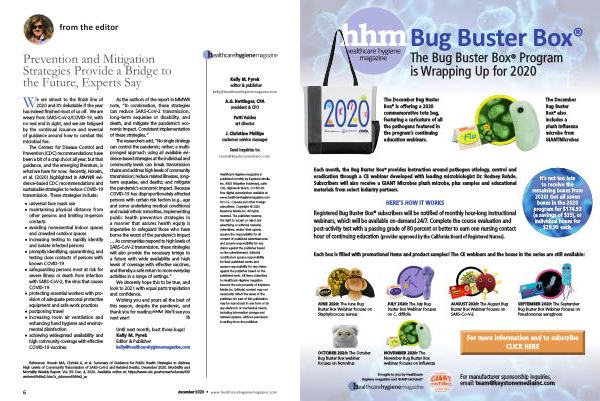 Healthcare Hygiene magazine is published monthly by Keystone Media Inc . 8925 Ridgeline Boulevard , suite 106 , Highlands Ranch , CO 80129 . Free digital subscriptions available at www . healthcarehygienemagazine . com for U . S ., Canada and other foreign subscribers . Copyright © 2020 Keystone Media Inc . All rights reserved . The publisher reserves the right to accept or reject any advertising or editorial material . Advertisers , and / or their agents , assume the responsibility for all content of published advertisements and assume responsibility for any claims against the publisher based on the advertisement . Editorial contributors assume responsibility for their published works and assume responsibility for any claims against the publisher based on the published work . All items submitted to Healthcare Hygiene magazine become the sole property of Keystone Media Inc . Editorial content may not necessarily reflect the views of the publisher . No part of this publication may be reproduced in any form or by any electronic or mechanical means , including information storage and retrieval systems , without permission in writing from the publisher .