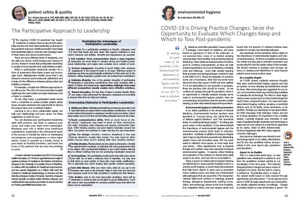 In an article published in the Annals of Internal Medicine , Environmental Services workers were described as “ unsung heroes , the critical first line of defense against infection ” and “ the unnoticed sinew of a well-functioning hospital .” 1 If nothing else good comes of the pandemic , it has demonstrated the importance of environmental hygiene and the environmental services ( EVS ) team in infection prevention . Suddenly , in addition to being an integral part of day-to-day infection prevention by disinfecting patient rooms and procedure areas , EVS has been asked to disinfect more spaces , in more ways than ever before . Other departments such as physical therapy and nutrition may have requested increased environmental hygiene . It requires critical thinking and evaluation of the evidence to decide what really needs to be done , and how best to accomplish it .