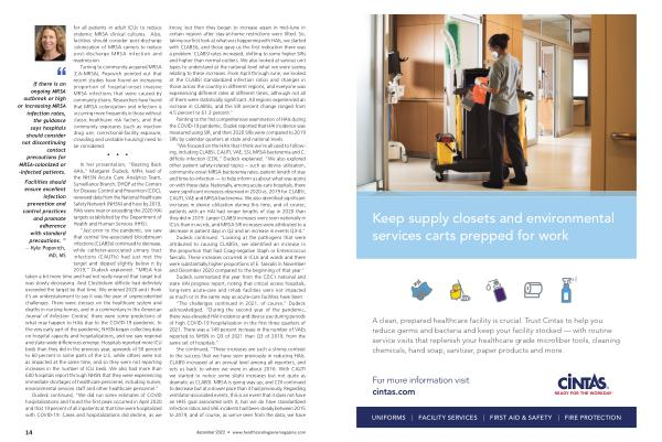 “ Just prior to the pandemic , we saw that central line-associated bloodstream infections ( CLABSIs ) continued to decrease , while catheter-associated urinary tract infections ( CAUTIs ) had just met the target and dipped slightly below it by 2019 ,” Dudeck explained . “ MRSA has taken a bit more time and had not really neared that target but was slowly decreasing . And Clostridium difficile had definitely exceeded the target by that time . We entered 2020 and I think it ’ s an understatement to say it was the year of unprecedented challenges . There were stresses on the healthcare system and deaths in nursing homes , and in a commentary in the American Journal of Infection Control , there were some predictions of what may happen to HAIs due to the COVID-19 pandemic . In the very early part of the pandemic , NHSN began collecting data on hospital capacity and hospitalizations , and we saw regional and state-wide differences emerge . Hospitals reported more ICU beds than they did in the previous year , upwards of 50 percent to 60 percent in some parts of the U . S . while others were not as impacted at the same time , and so they were not reporting increases in the number of ICU beds . We also had more than 600 hospitals report through NHSN that they were experiencing immediate shortages of healthcare personnel , including nurses , environmental services staff and other healthcare personnel .”