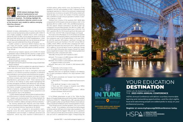 COVID-related challenges likely hindered implementation and effectiveness of infection prevention protocols in hospitals . The findings highlight the importance of healthcare infection control as one of the foremost tools needed to address emerging infectious diseases .” — Margaret Dudeck , MPH
