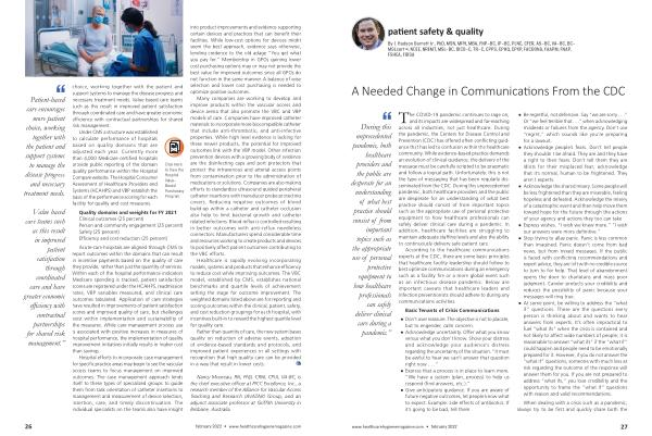 Acute-care hospitals are aligned through CMS to report outcomes within the domains that can result in incentive payments based on the quality of care they provide , rather than just the quantity of services . Within each of the hospital performance indicators Medicare spending is tracked , patient satisfaction scores are registered under the HCAHPS , readmission rates , VBP variables measured , and clinical care outcomes tabulated . Application of care strategies have resulted in improvements of patient satisfaction scores and improved quality of care , but challenges exist within implementation and sustainability of the measures . While care management process use is associated with positive increases in measures of hospital performance , the implementation of quality improvement initiatives initially results in higher cost than savings .