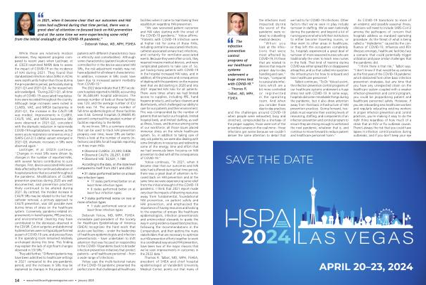 “ When you look at the infections that were most affected by COVID-19 , it ’ s those that are related to devices that require proper day-to-day handling and care ,” he says , “ compared to surgical site infections which are a bit more controlled or regimented in the operating room . And when you consider those day-to-day practices and the challenges around COVID-19 when people were exhausted , busy and stretched , compounded by a shortage of the proper supplies , those were sort of the proverbial canaries-in-the-coal-mine – those infections got worse because we couldn ’ t deliver the same attention to detail that we had to for COVID-19 infections . Other factors that we ’ ve seen in play include turnover in staffing . We ’ ve seen nationally during the pandemic and beyond a lot of nursing personnel who left their institutions to either become traveling nurses , or they went to other areas in healthcare , or they left the occupation completely . So , hospitals experienced a great deal of turnover of more seasoned nurses who are traditionally the ones to teach new nurses in the field . That kind of training during COVID was either spread thin or disappeared altogether , and so that called into question the infrastructure for how to onboard and train healthcare personnel .”