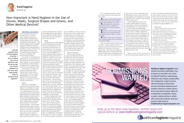 In this article , I consider the relationship between hand hygiene and medical devices such as gloves , masks , surgical drapes / gowns , etc ., as well as explore how this relationship reduces or accelerates the risk of infection transmission .