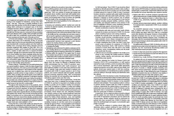 out of equipment and supplies , loss of staff , anesthesia providers moving to the hospitals for intubations , among many other things ,” Link says . “ There was a complete shutdown in ASCs because cases were elective , but this did not happen in inpatient settings which continued to do emergent cases . In the future I anticipate that there will be a quicker move to do outpatient surgery for urgent and emergent cases that do not require an overnight bed . We have seen poor outcomes for those procedures which were delayed , both in quality of life and health and I think this will be taken into consideration should another shutdown become necessary and become part of the plan up front .”