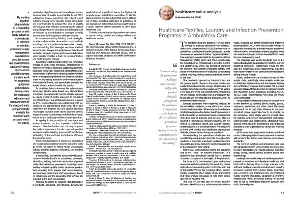 Understanding the operational challenges and reusable / disposable product shortfalls throughout the pandemic is important as we begin to dissect infection prevention programs related to textile management in the ambulatory care setting .”