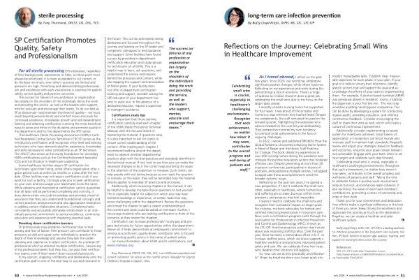 Some healthcare facilities require SP certification for technicians upon their hiring , while others organization offer a grace period such as within six months or a year after the hire date . Other facilities may not require certification at all ; if you work for such a facility , I strongly urge you to seek certification on your own and encourage your teammates to do the same . While attaining and maintaining certification cannot guarantee that all tasks will be performed completely and correctly , it does demonstrate one ’ s job knowledge and provides a level of assurance that they can understand foundational concepts and correct practices and processes and also appropriate resolutions to address certain challenging situations . Completing tasks consistently and accurately ultimately comes down to an individual ’ s personal commitment to service excellence , continuing education and experience with mastering essential tasks .