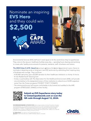 The 2024 Cintas C . A . P . E . Award ( Cleaning to Advance the Patient Experience ) is your chance to nominate a deserving acute or long-term care EVS technician by submitting their inspiring story of kindness and courage . They could win :