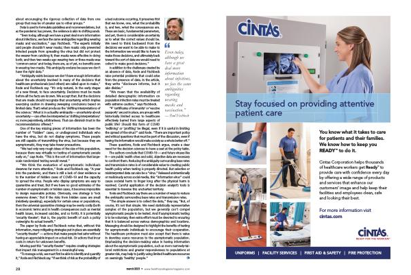 “ The simple answer is to collect the data ,” they say , “ But , of course , it ’ s not that simple . We need statistically representative samples of the population , but we generally can ’ t compel asymptomatic people to be tested . And if asymptomatic testing is to be voluntary , then extra effort must be devoted to ensuring that it is balanced across various demographics and locations . Messaging should be designed to highlight the benefits of testing for asymptomatic individuals to encourage their cooperation . The healthcare profession must also accept that there is value in devoting scarce resources to the asymptomatic population . Emphasizing the decision-making value in having information about the asymptomatic population , such as more narrowly-tailored restrictions and greater responsiveness to populations at greater risk , may help to justify using limited healthcare resources on seemingly ‘ healthy ’ people .”