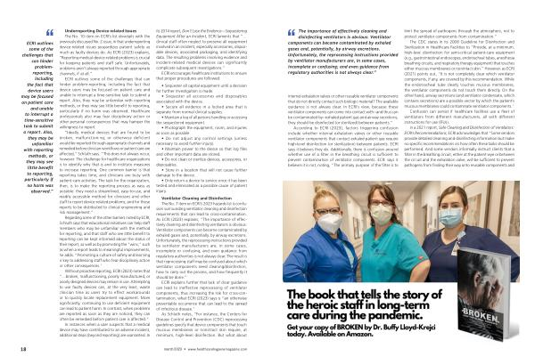 In a 2021 report , Safe Cleaning and Disinfection of Ventilators : ECRI ’ s Recommendations , ECRI acknowledges that “ Some vendors provide detailed cleaning and disinfecting information but make no specific recommendations on how often these tasks should be performed . And some vendors informally instruct clients that a filter in the breathing circuit , either at the patient wye or between the circuit and the exhalation valve , will be sufficient to prevent pathogens from finding their way onto reusable components and