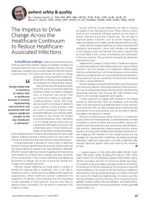 In healthcare settings , healthcare-associated infections ( HAIs ) are a persistent problem , leading to morbidity , mortality , and increased healthcare costs . In order to address this issue , change leadership is needed to promote and implement effective infection control practices . This article will discuss the need for change leadership in reducing HAIs in healthcare , the benefits of effective change leadership , and strategies for implementing change .