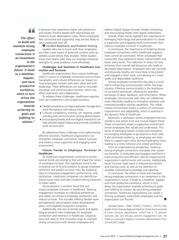 By addressing these challenges and implementing effective solutions, healthcare organizations can strengthen employee connection, reduce turnover, and create a more supportive and engaging work environment.