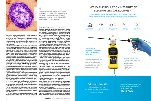 Vaccination campaigns prevent major measles outbreaks in the United States , but measles can be a deadly disease for adults and children in countries where violence or other obstacles block immunization .” — CDC Health Alert first step that guides diagnosis and care . I am concerned about infections being missed by clinicians and therefore communications such as the CDC alert are helpful in raising awareness . We must remember that individuals may be coming from a country that may have endemic infections or tuberculosis , or maybe other infections caused by antibiotic-resistant pathogens that are much more concerning .”