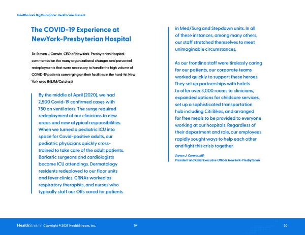 Dr . Steven J . Corwin , CEO of NewYork-Presbyterian Hospital , commented on the many organizational changes and personnel redeployments that were necessary to handle the high volume of COVID-19 patients converging on their facilities in the hard-hit New York area ( NEJM / Catalyst ):