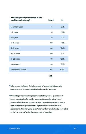 † “ Percentage ” indicates the proportion of all responses given to each survey question , broken out by response . For questions that were structured to allow respondents to select more than one response , the total number of responses will be higher than the total number of respondents . Therefore , any given “ total number ” is not directly correlated to the “ percentage ” value for these types of questions .