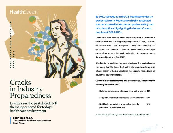 By 2010 , colleagues in the U . S . healthcare industry expressed worry . Reports from highly respected sources exposed issues around patient safety and miscalculations , highlighting the industry ’ s many problems ( IOM , 2000 ).